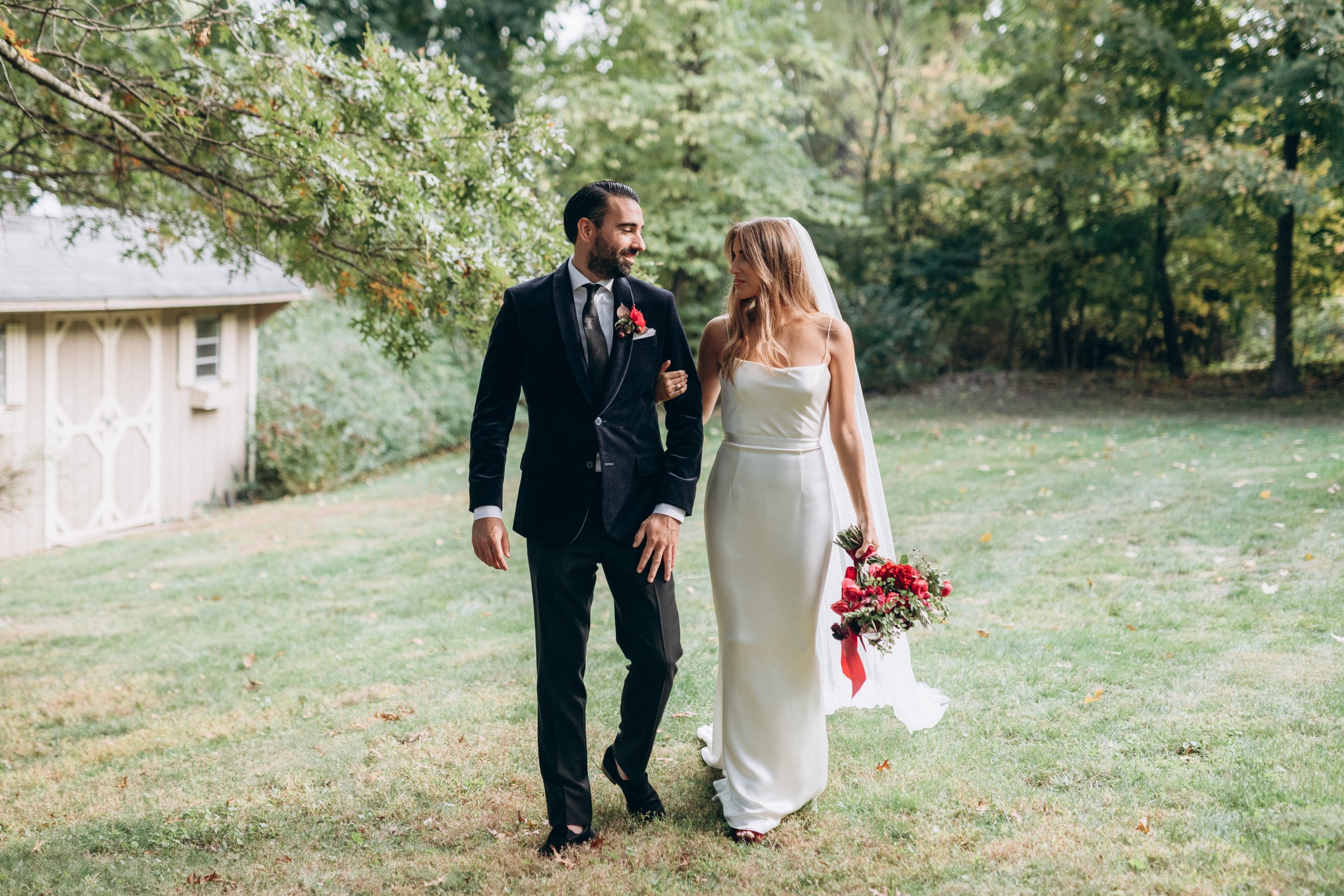 If you remember 2020 weddings, you know: al fresco wasn’t just a vibe — it was survival. Guest lists were trimmed, floor plans were reimagined, and suddenly every celebration needed good airflow and a little extra flexibility. But somehow this wedding managed to feel less like a compromise and more like the dream dinner party version of a fall wedding. The jewel-tone florals, the crisp October air, the clinking glasses under the trees — it all worked together in that “wow, this is actually perfect” kind of way.