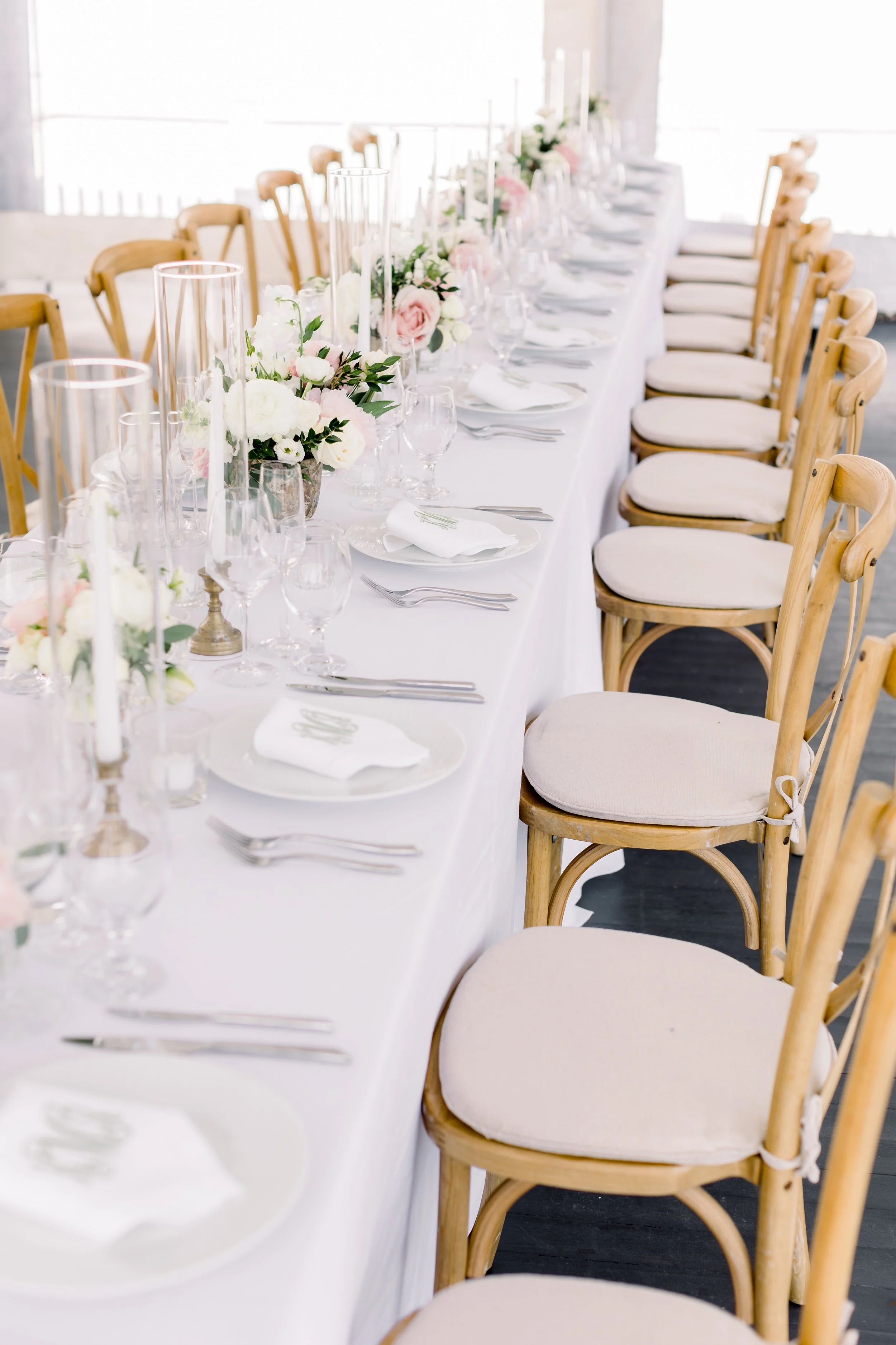 The florals were everything—and I mean, everything. Imagine soft blush and white blooms perfectly in sync with the season. Blush peonies, garden roses, and lisianthus added softness and romance, while delicate snowdrops and flowering quince branches gave the arrangements just the right touch of whimsy. Think fresh-picked-meets-effortless-beauty.